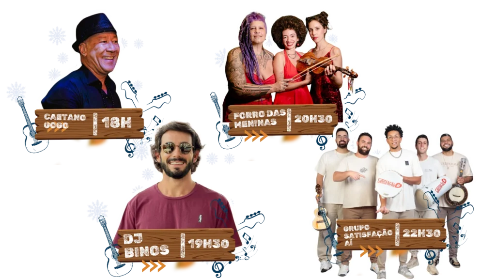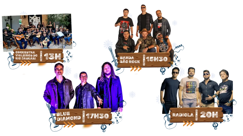 A programação de shows começa no período da tarde e se estende até a noite. Consulte a grade completa no site.